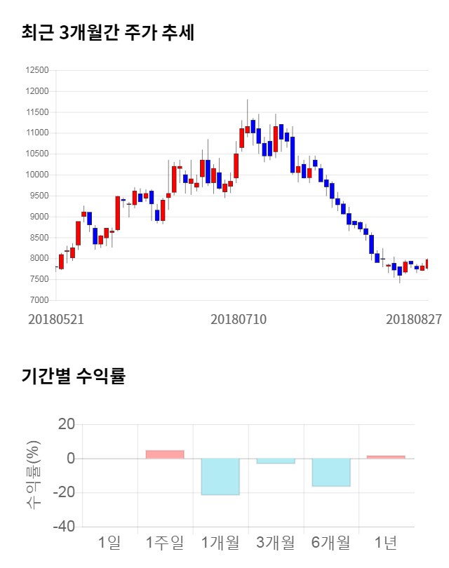 [그림 1] 최근 3개월 간 주가 추세 및 기간별 수익률
