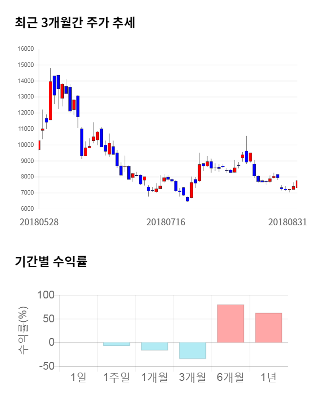 [그림 1] 최근 3개월 간 주가 추세 및 기간별 수익률