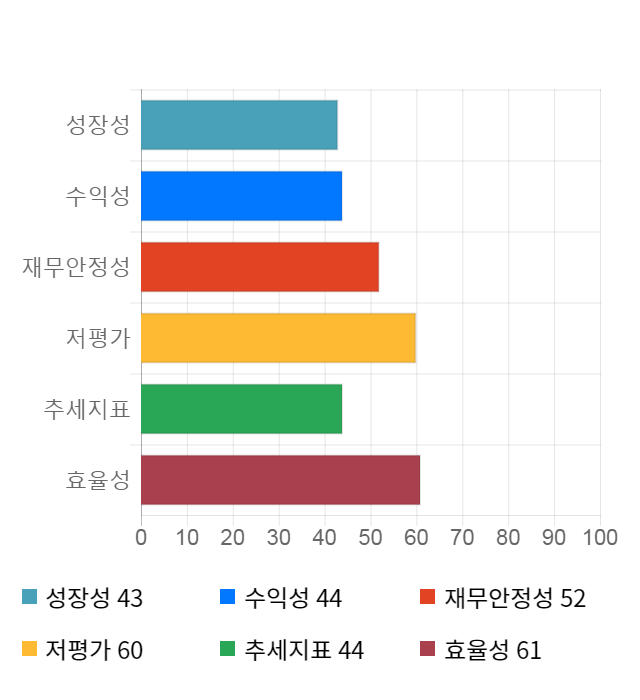 AI 인공지능 종목 분석 시스템을 이용해 성장성, 수익성, 효율성, 안전성, 저평가성, 추세 등 주가 수익률에 영향을 줄 수 있는 6가지 핵심 투자 지표를 점수화하여 종목의 투자 매력도를 계산해보았다.