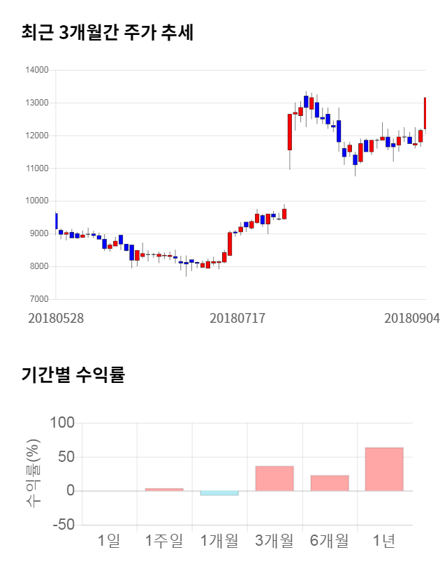 [그림 1] 최근 3개월 간 주가 추세 및 기간별 수익률