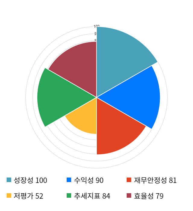 성장성 점수는 기업의 실적이 전년 동기 대비 얼마나 증가했는지를 나타낸 지표로 기업의 이익 성장 추세를 나타낸다.