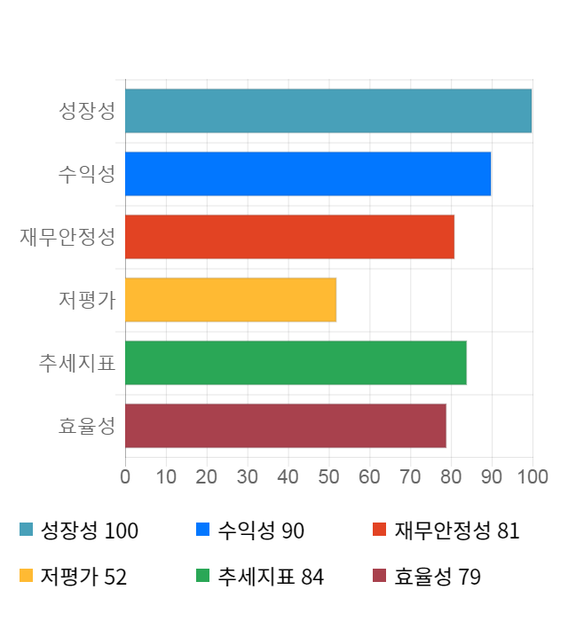 성장성 점수는 기업의 실적이 전년 동기 대비 얼마나 증가했는지를 나타낸 지표로 기업의 이익 성장 추세를 나타낸다.