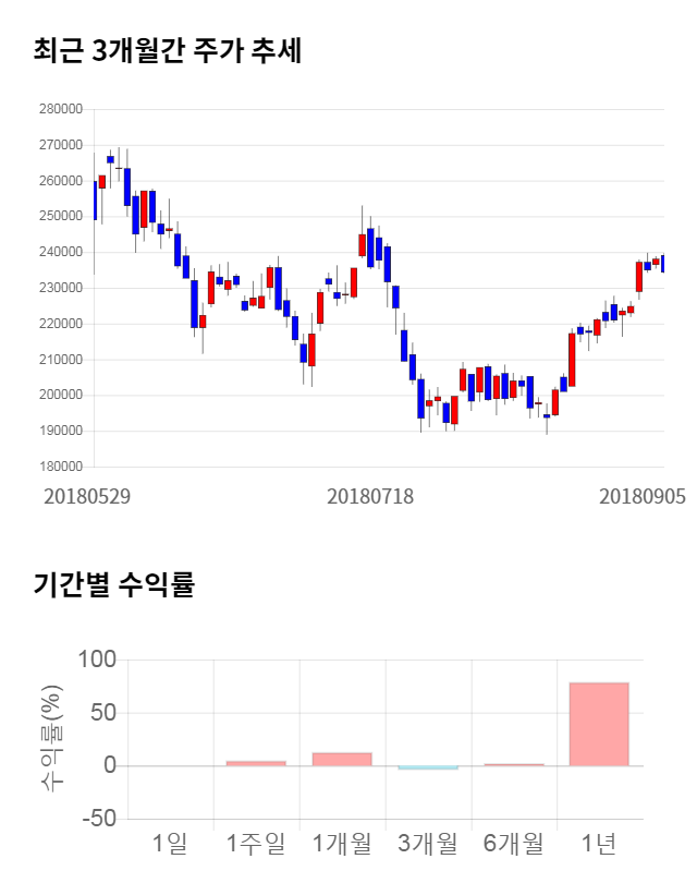 [그림 1] 최근 3개월 간 주가 추세 및 기간별 수익률