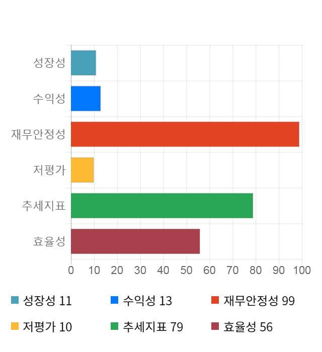 (위의 AI인공지능 점수는 재무 데이터를 기반으로 전체 상장 종목과 비교/분석하여 도출한 점수로 높은 점수가 반드시 높은 수익률을 보장하지 않습니다. 위의 자료는 당사의 추천 종목이 아니며, 투자 시 참고용으로 제시해드리는 것입니다. 핵심투자지표를 결합해 종목의 투자매력도를 종합 계산한 "인공지능 투자점수"는 "거장들의 투자공식" 앱에서 확인하실 수 있습니다.)