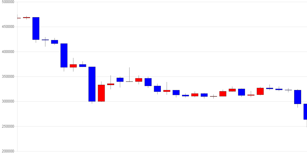 전일 대비 최저가는 248,200원, 최고가는 265,500원이었다. 1일 거래량은 310,456,679 ETH이며, 거래대금은 약 8,028,274,365원이었다.