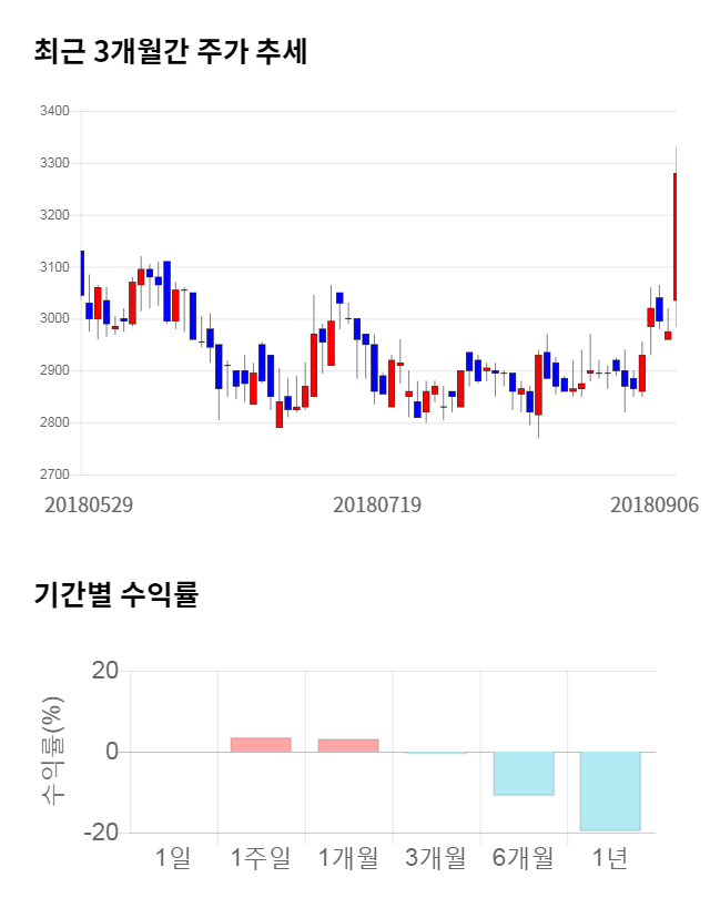 [그림 1] 최근 3개월 간 주가 추세 및 기간별 수익률