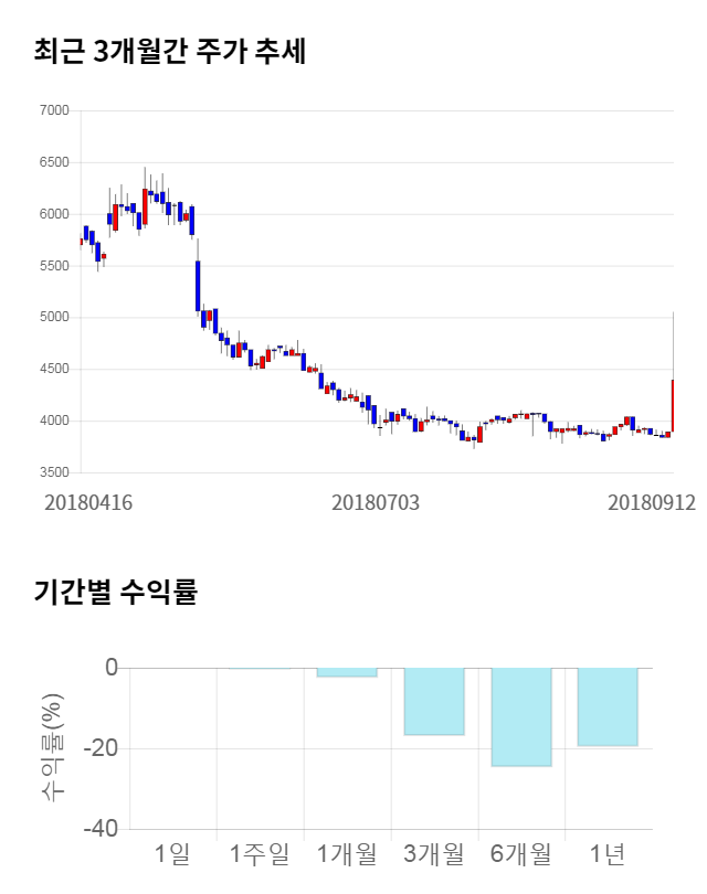 [그림 1] 최근 3개월 간 주가 추세 및 기간별 수익률