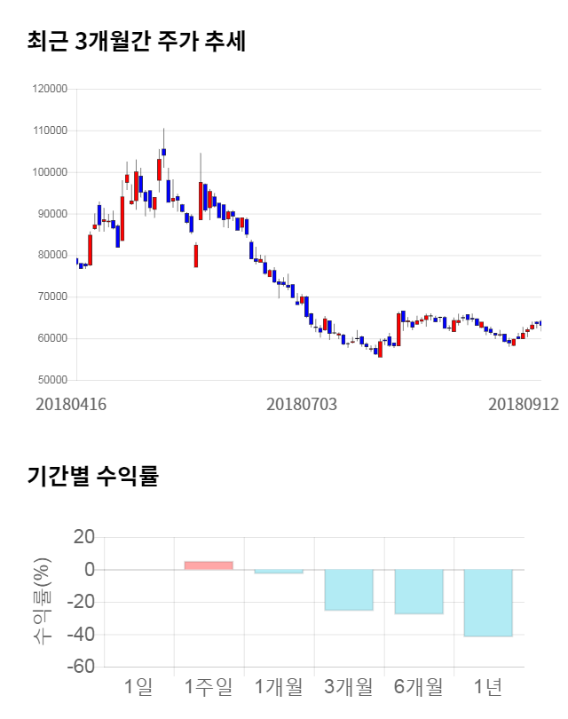 [그림 1] 최근 3개월 간 주가 추세 및 기간별 수익률