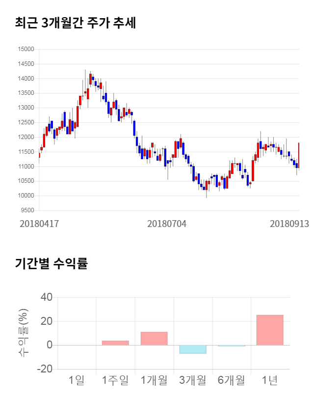 [그림 1] 최근 3개월 간 주가 추세 및 기간별 수익률