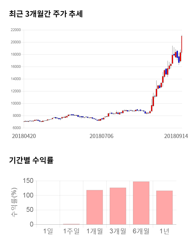 주가 모멘텀은 눈에 띄는 성장세를 기록했다. 최근 6개월 수익률이 무려 147.97%의 상승폭을 기록했다. 최근 1개월 수익률 또한 118.64% 상승하며 굉장히 좋은 모멘텀을 보이고 있다.