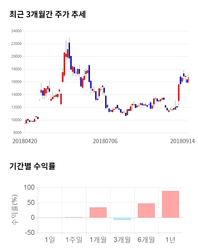 [그림 1] 최근 3개월 간 주가 추세 및 기간별 수익률
