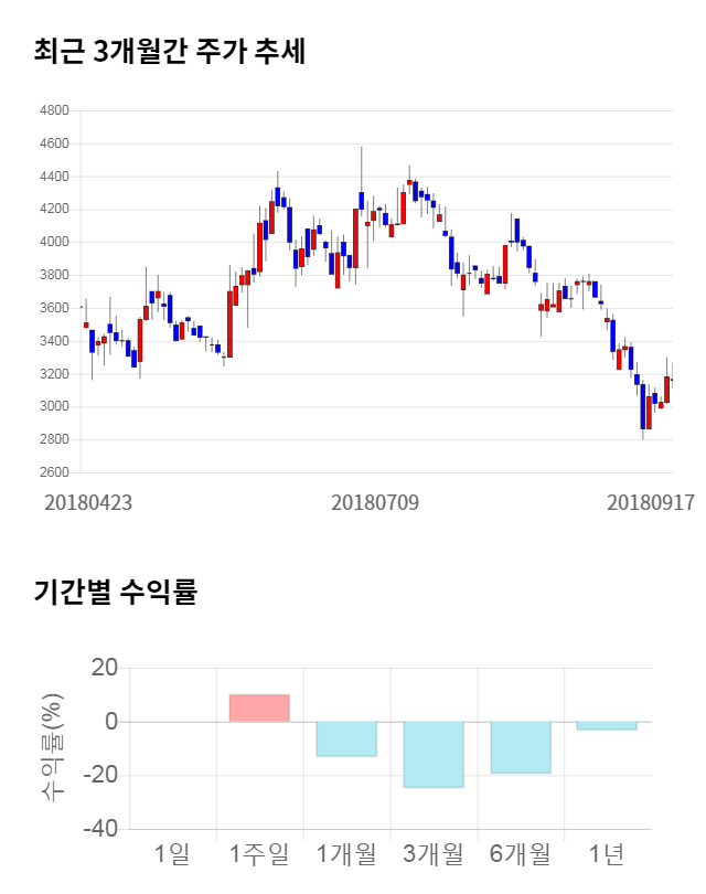 [그림 1] 최근 3개월 간 주가 추세 및 기간별 수익률