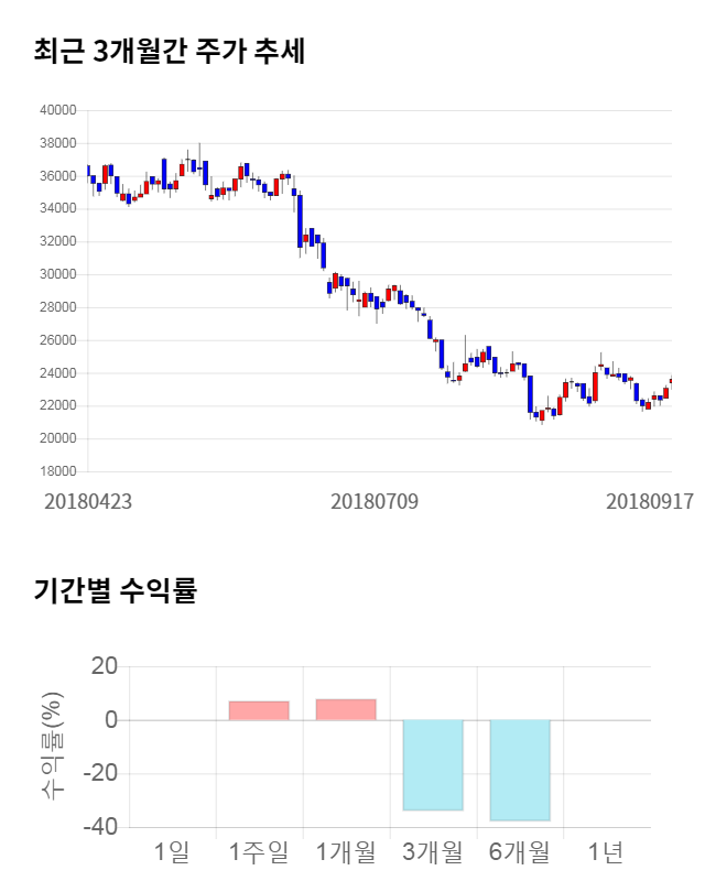 주가 모멘텀은 평범한 수준이었다. 최근 1개월 수익률이 8.01%, 3개월 수익률은 -34.17%, 6개월 수익률은 -38.06%를 기록했다.