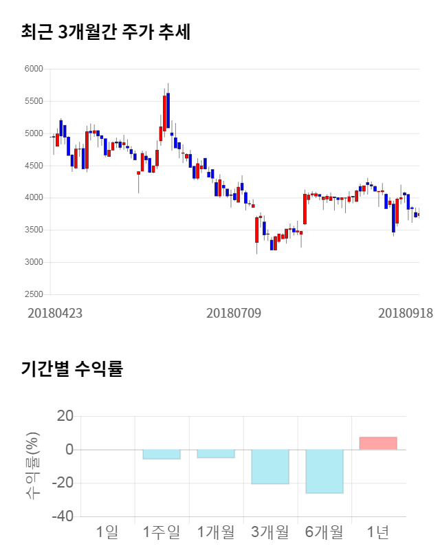 [그림 1] 최근 3개월 간 주가 추세 및 기간별 수익률