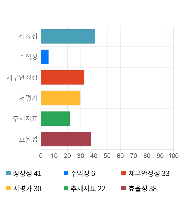 성장성 점수는 기업의 실적이 전년 동기 대비 얼마나 증가했는지를 나타낸 지표로 기업의 이익 성장 추세를 나타낸다.