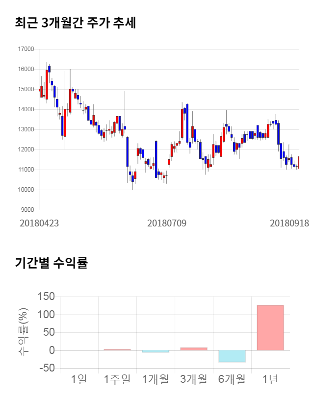 [그림 1] 최근 3개월 간 주가 추세 및 기간별 수익률