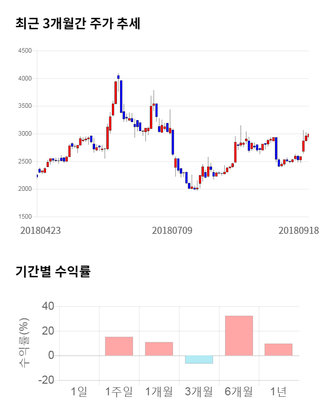 [그림 1] 최근 3개월 간 주가 추세 및 기간별 수익률