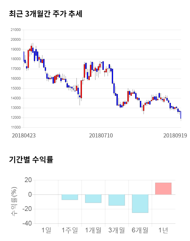 [그림 1] 최근 3개월 간 주가 추세 및 기간별 수익률