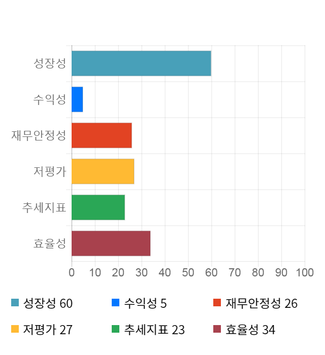 성장성 점수는 기업의 실적이 전년 동기 대비 얼마나 증가했는지를 나타낸 지표로 기업의 이익 성장 추세를 나타낸다.