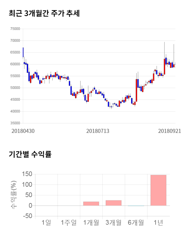 [그림 1] 최근 3개월 간 주가 추세 및 기간별 수익률