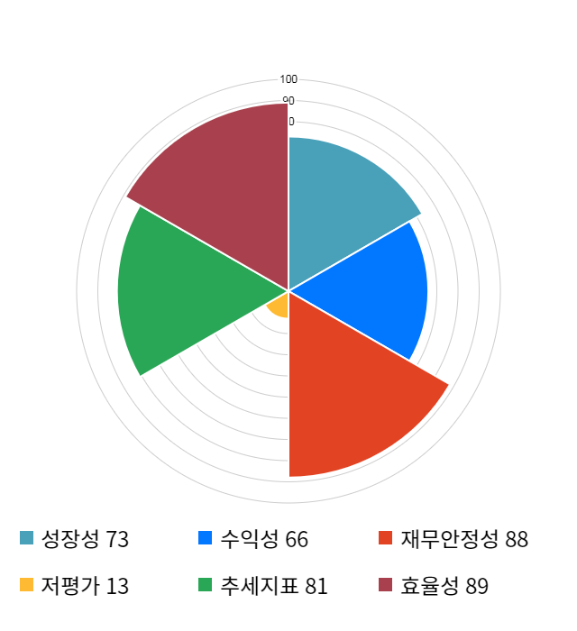 AI 인공지능 종목 분석 시스템을 이용해 성장성, 수익성, 효율성, 안전성, 저평가성, 추세 등 주가 수익률에 영향을 줄 수 있는 6가지 핵심 투자 지표를 점수화하여 종목의 투자 매력도를 계산해보았다.