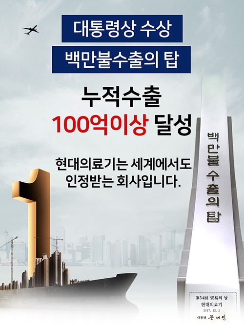 혁신적인 기술융합으로 고객의 건강만을 위해서 달리고 있는 ㈜현대의료기가 전기매트, 전기장판 수출부문에서 문재인대통령상을 수상했다고 밝혔다.