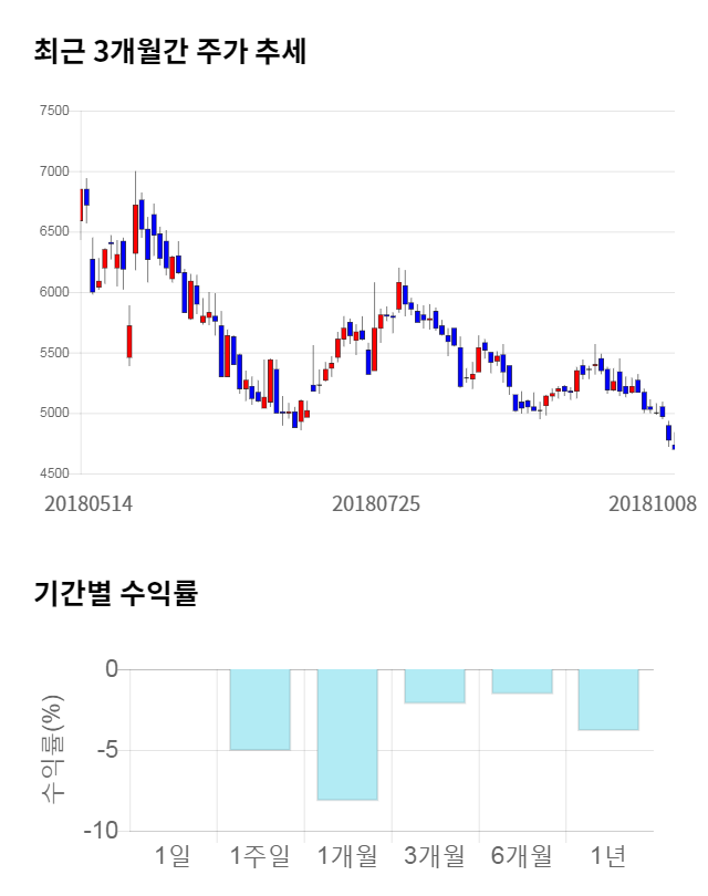 [그림 1] 최근 3개월 간 주가 추세 및 기간별 수익률