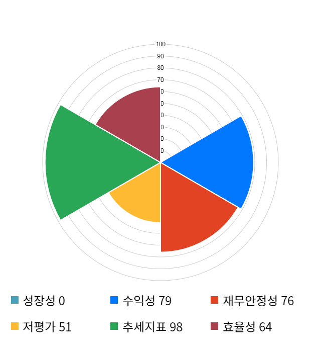 AI 인공지능 종목 분석 시스템을 이용해 성장성, 수익성, 효율성, 안전성, 저평가성, 추세 등 주가 수익률에 영향을 줄 수 있는 6가지 핵심 투자 지표를 점수화하여 종목의 투자 매력도를 계산해보았다.
