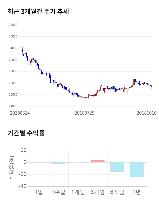 [그림 1] 최근 3개월 간 주가 추세 및 기간별 수익률