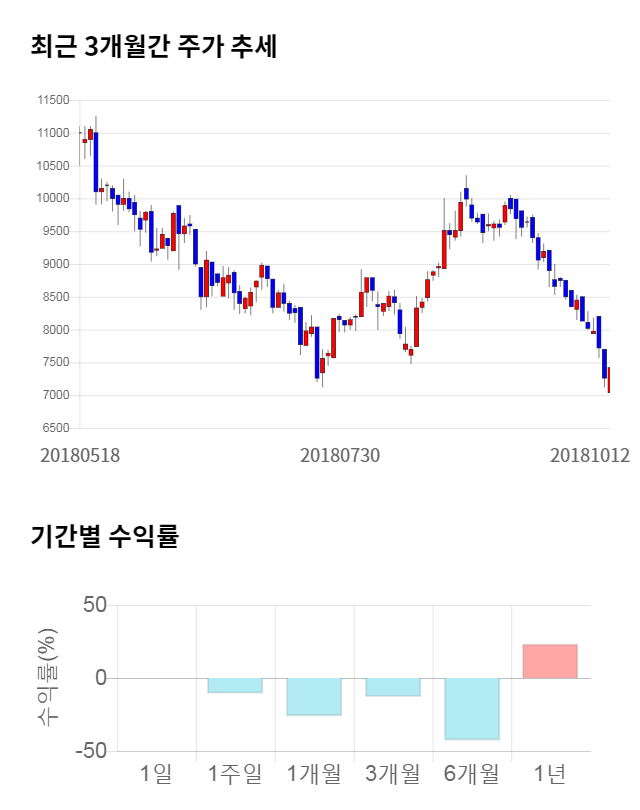 [그림 1] 최근 3개월 간 주가 추세 및 기간별 수익률