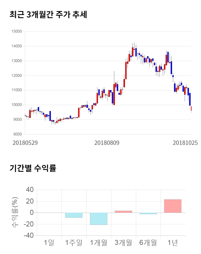 [그림 1] 최근 3개월 간 주가 추세 및 기간별 수익률