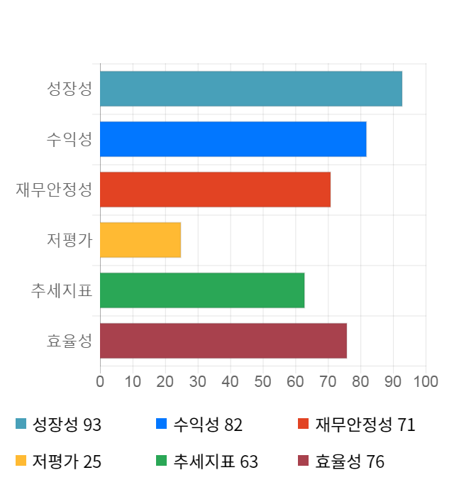 성장성 점수는 기업의 실적이 전년 동기 대비 얼마나 증가했는지를 나타낸 지표로 기업의 이익 성장 추세를 나타낸다.