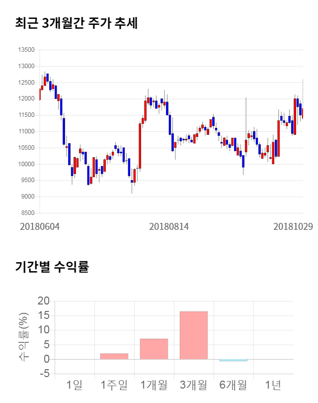 [그림 1] 최근 3개월 간 주가 추세 및 기간별 수익률