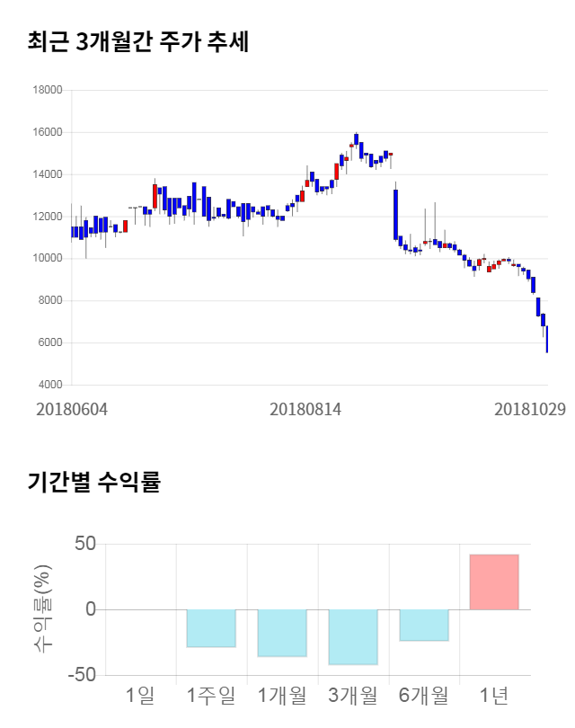 [그림 1] 최근 3개월 간 주가 추세 및 기간별 수익률
