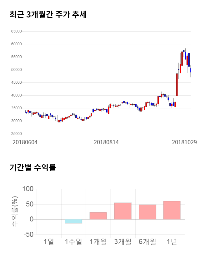 [그림 1] 최근 3개월 간 주가 추세 및 기간별 수익률