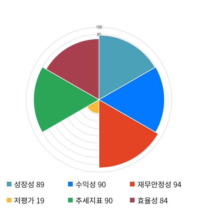 (위의 AI인공지능 점수는 재무 데이터를 기반으로 전체 상장 종목과 비교/분석하여 도출한 점수로 높은 점수가 반드시 높은 수익률을 보장하지 않습니다. 위의 자료는 당사의 추천 종목이 아니며, 투자 시 참고용으로 제시해드리는 것입니다. 핵심투자지표를 결합해 종목의 투자매력도를 종합 계산한 "인공지능 투자점수"는 "거장들의 투자공식" 앱에서 확인하실 수 있습니다.)