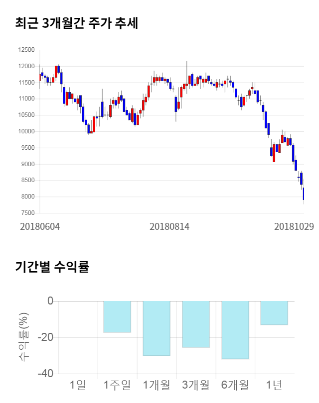 [그림 1] 최근 3개월 간 주가 추세 및 기간별 수익률