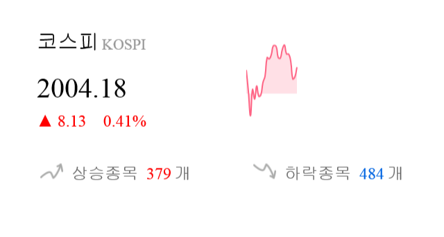10월 30일 11시 0분 코스피는 전일 대비 8.13p(0.41%) 상승한 2004.18p를 기록하고 있다.