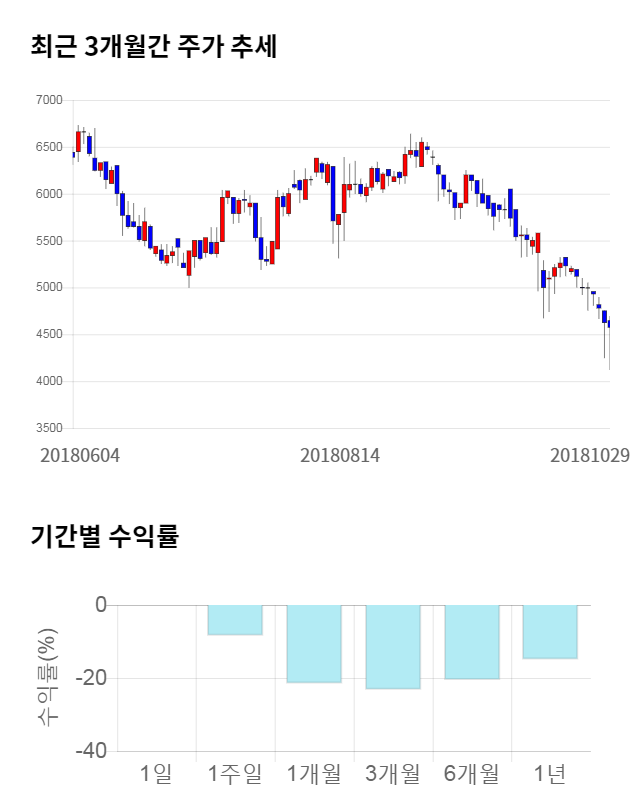 [그림 1] 최근 3개월 간 주가 추세 및 기간별 수익률