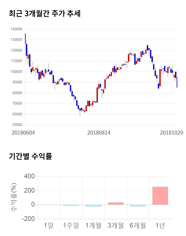 [그림 1] 최근 3개월 간 주가 추세 및 기간별 수익률