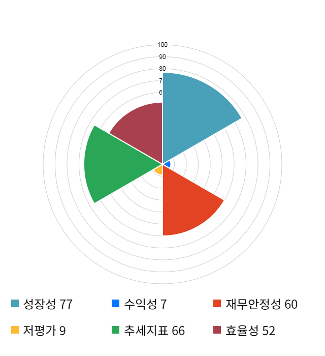 성장성 점수는 기업의 실적이 전년 동기 대비 얼마나 증가했는지를 나타낸 지표로 기업의 이익 성장 추세를 나타낸다.