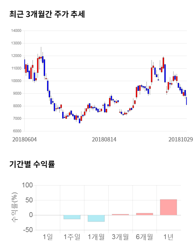 [그림 1] 최근 3개월 간 주가 추세 및 기간별 수익률