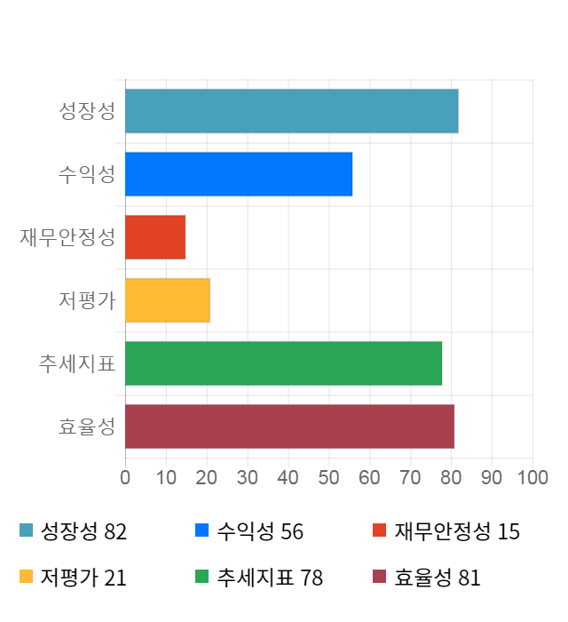 성장성 점수는 기업의 실적이 전년 동기 대비 얼마나 증가했는지를 나타낸 지표로 기업의 이익 성장 추세를 나타낸다.