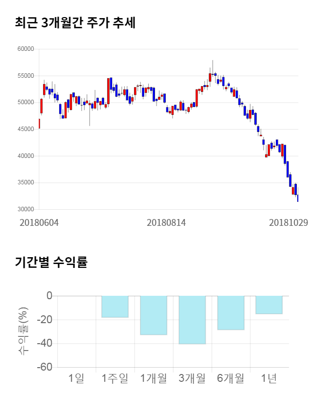 주가 모멘텀은 좋지 못했다. 최근 3개월 수익률은 -40.87%의 하락폭을 기록했다. 최근 1개월 수익률 또한 -33.19% 하락하며 부진한 모멘텀을 이어가고 있다.