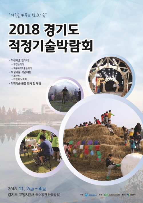 `2018 경기도 적정기술박람회`가 오는 11월 2일(금)부터 4일(일)까지 고양시 일산호수공원 한울광장에서 `마을을 바꾸는 착한기술`이라는 주제로 개최된다.