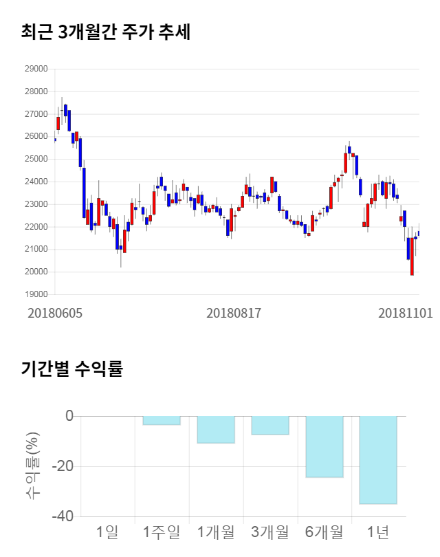 [그림 1] 최근 3개월 간 주가 추세 및 기간별 수익률