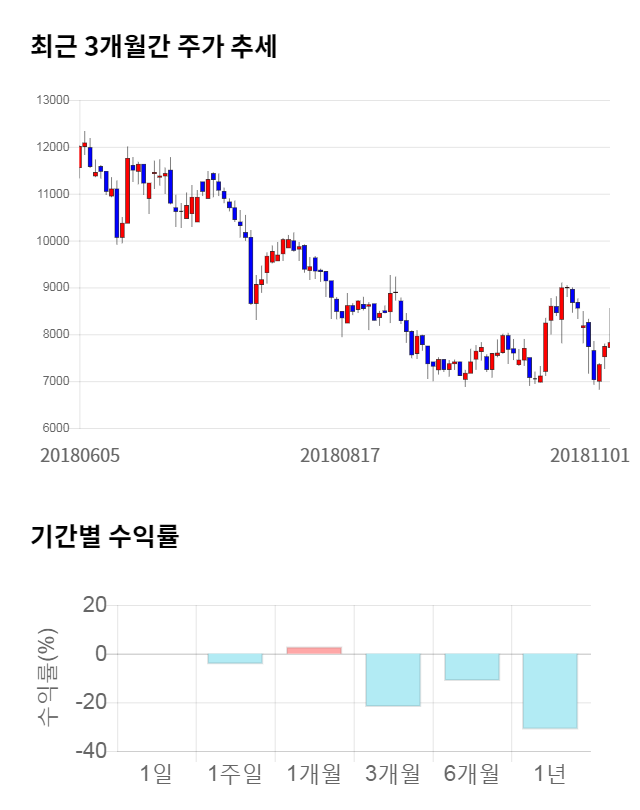 [그림 1] 최근 3개월 간 주가 추세 및 기간별 수익률