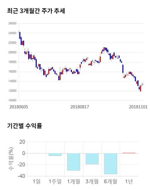 [그림 1] 최근 3개월 간 주가 추세 및 기간별 수익률