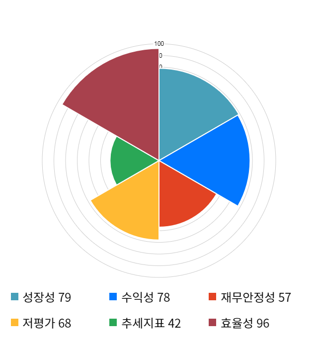 AI 인공지능 종목 분석 시스템을 이용해 성장성, 수익성, 효율성, 안전성, 저평가성, 추세 등 주가 수익률에 영향을 줄 수 있는 6가지 핵심 투자 지표를 점수화하여 종목의 투자 매력도를 계산해보았다.