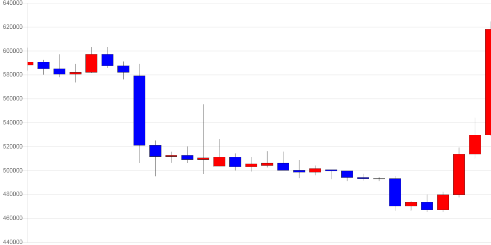 11월 05일 05시 06분 현재 암호화폐 거래소 코인원에 따르면 비트코인 캐시는 전일 대비 81,000원 (14.92%) 오른 624,000원에 거래되고 있다.